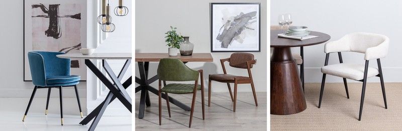 Niezależnie od tego, czy wybierzesz monochromatyczny zestaw krzeseł, czy zdecydujesz się dołączyć do trend łączenia różnych kolorów i/lub odcieni, oto palety niektórych z najpopularniejszych stylów: