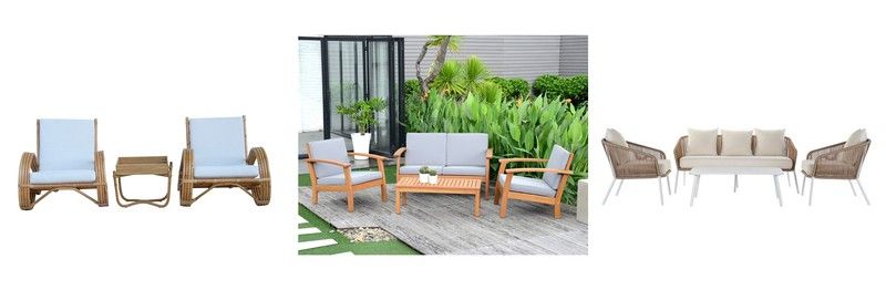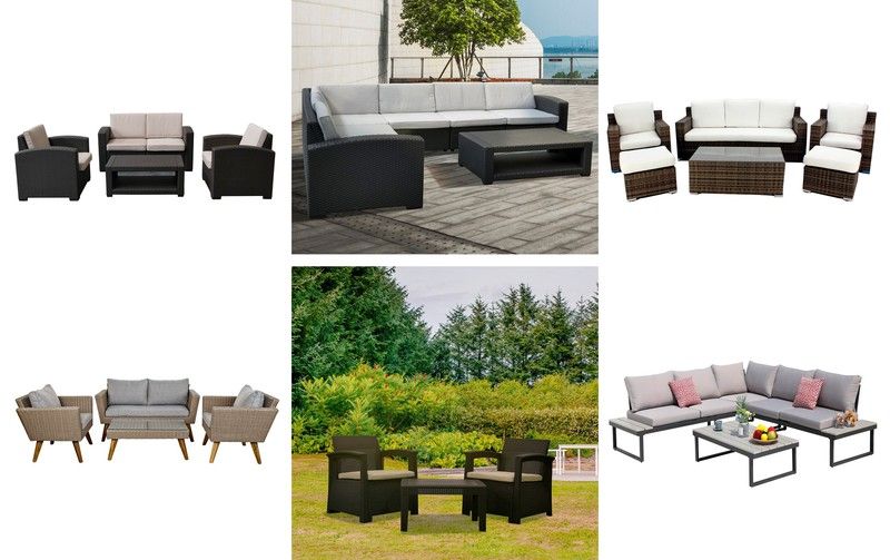 Inną opcją jest postawienie na bardziej wyszukane materiały, takie jak syntetyczny rattan, z którego wykonany jest zestaw dwóch sof dwuosobowych z wbudowanym szklanym blatem. Ma poduszki wykonane z dralonu, rodzaju włókna syntetycznego, które zapewnia komfort i odporność. Ponadto poduszki te można zdjąć, co ułatwia ich czyszczenie. Co do reszty, po prostu martw się o rozszerzenie oczu i oczyszczenie umysłu, ponieważ elementy w tym zestawie są odporne na ścieranie i blaknięcie.