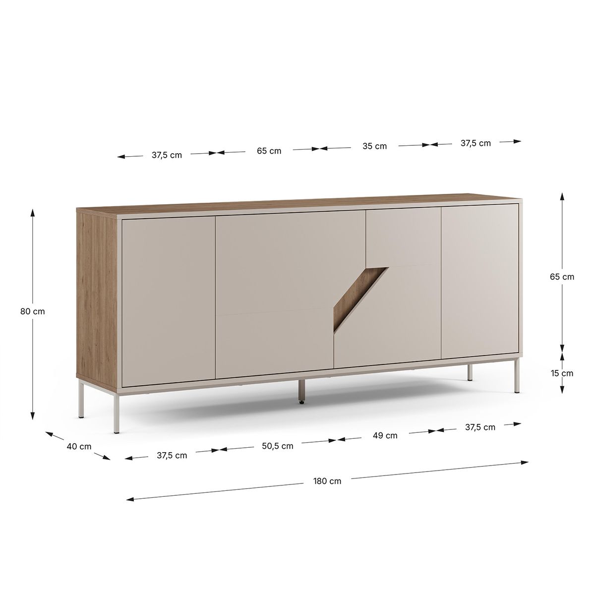 Drewniana komoda w kolorze kremowym i dębowym, 180 x 40 x 80 cm | Lilou
