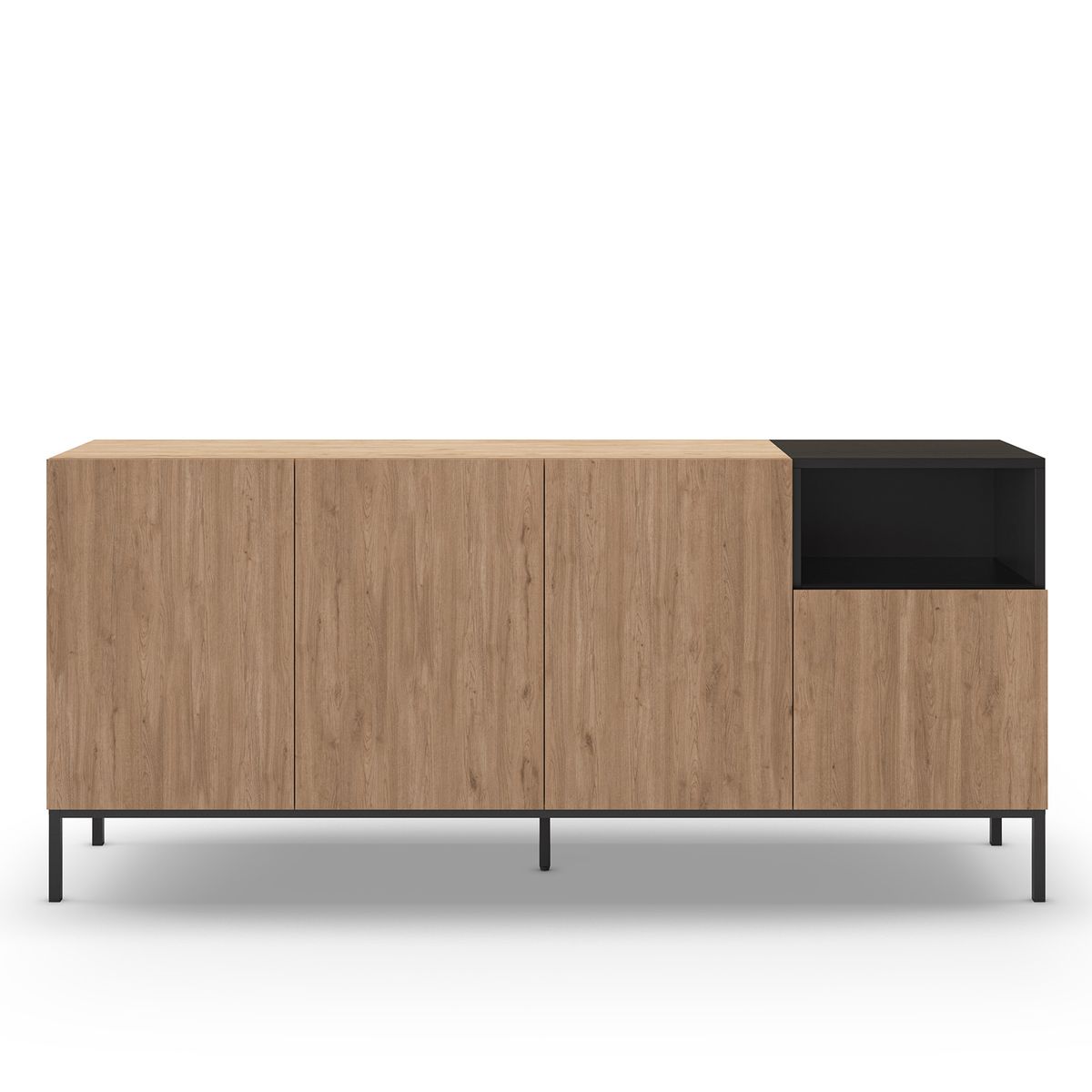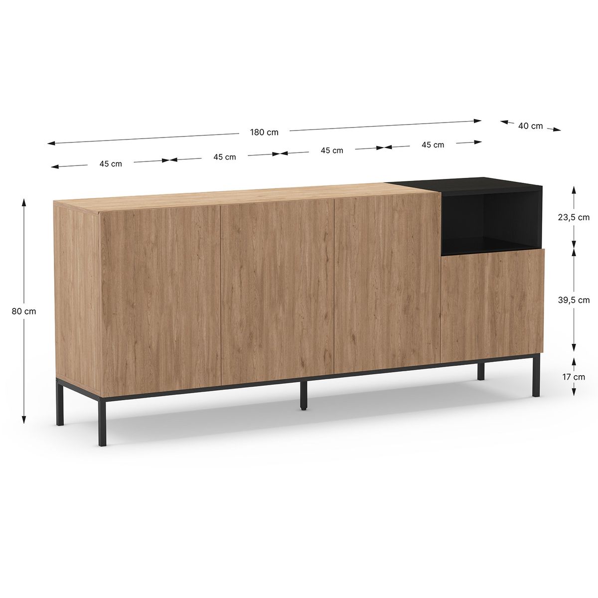 Drewniano-metalowa komoda w kolorze dębowym i czarnym, 180 x 40 x 80 cm | Cailin