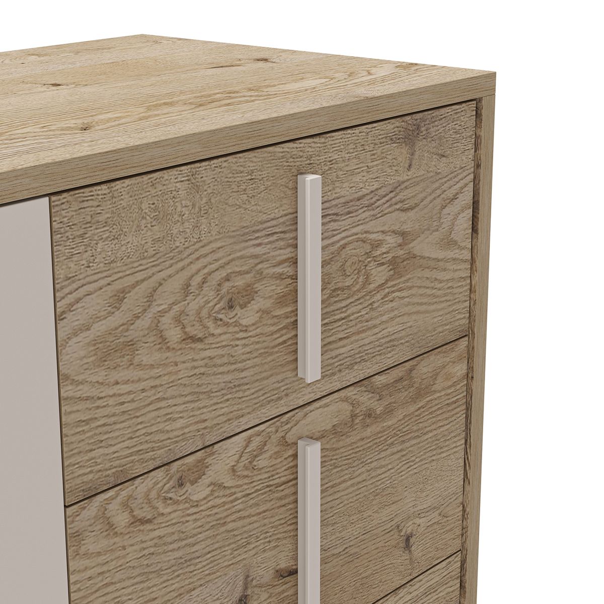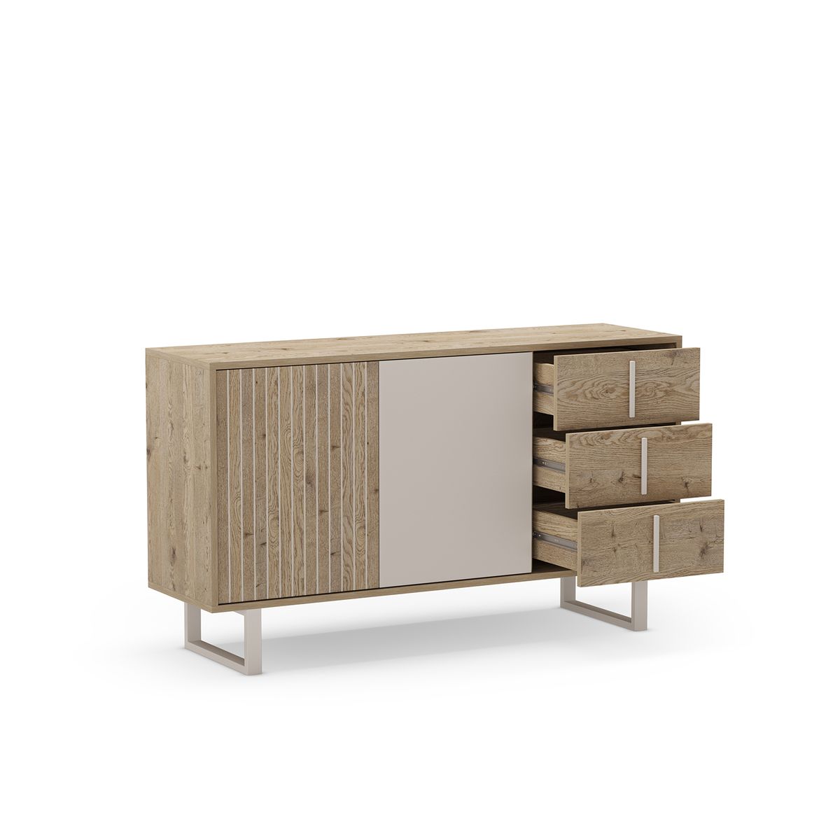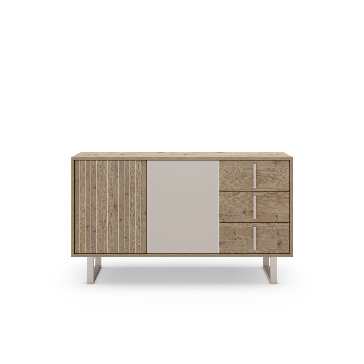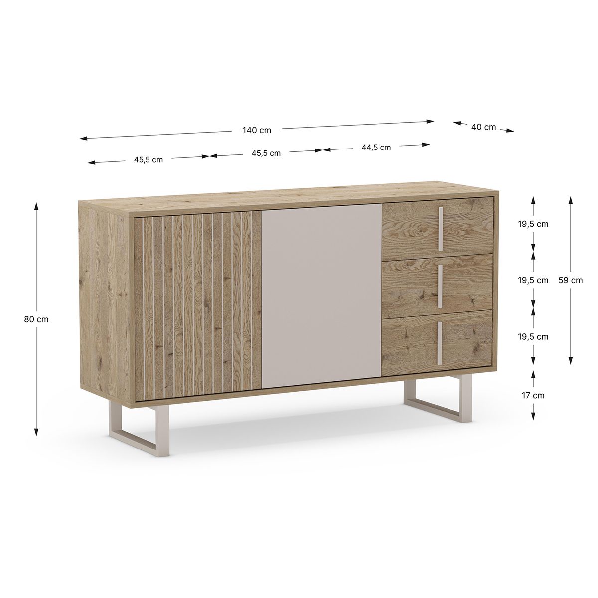 Drewniano-metalowa komoda w kolorze dębowym i szarym, 140 x 40 x 80 cm | Millay
