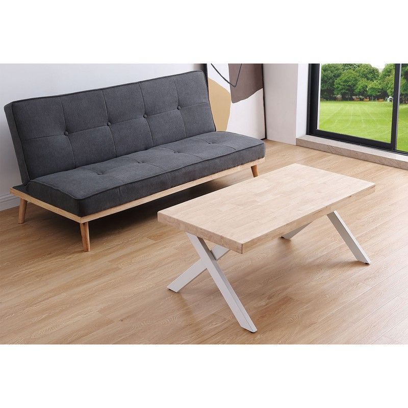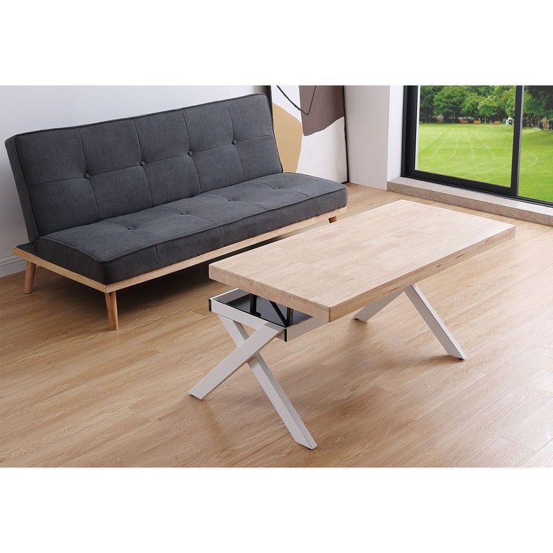 Gładki stolik kawowy z podnoszonym blatem z dębu i metalu w kolorze jasnego naturalnego i białego, 120 x 66 x 47/62 cm | Xena