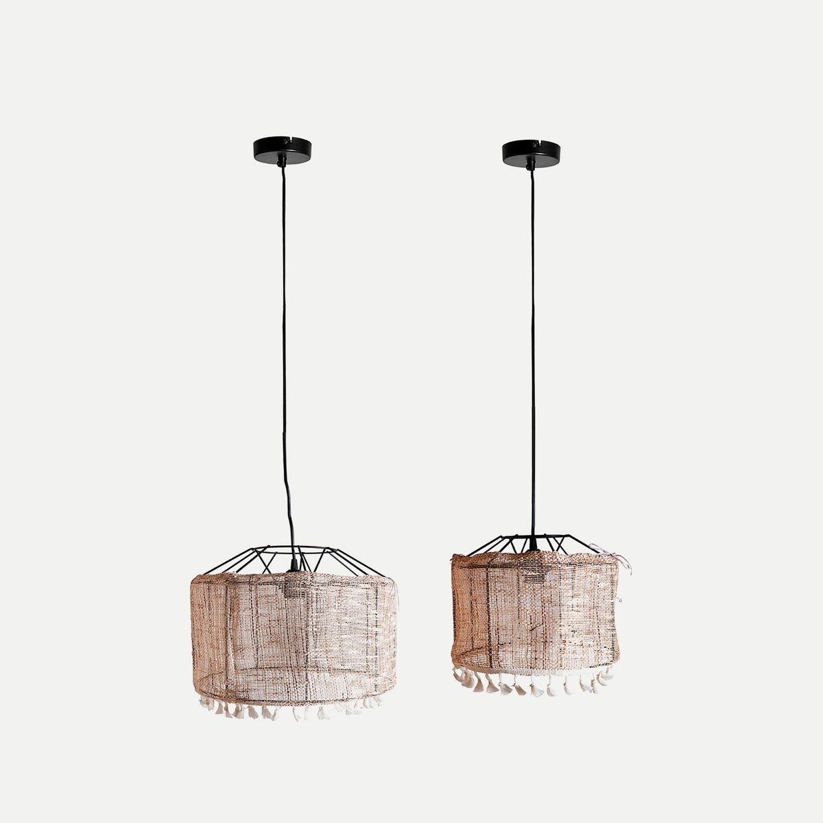 Juego de 2 lámparas de techo de metal y lino en marrón, 28 x 28 x 35 cm | Shipley