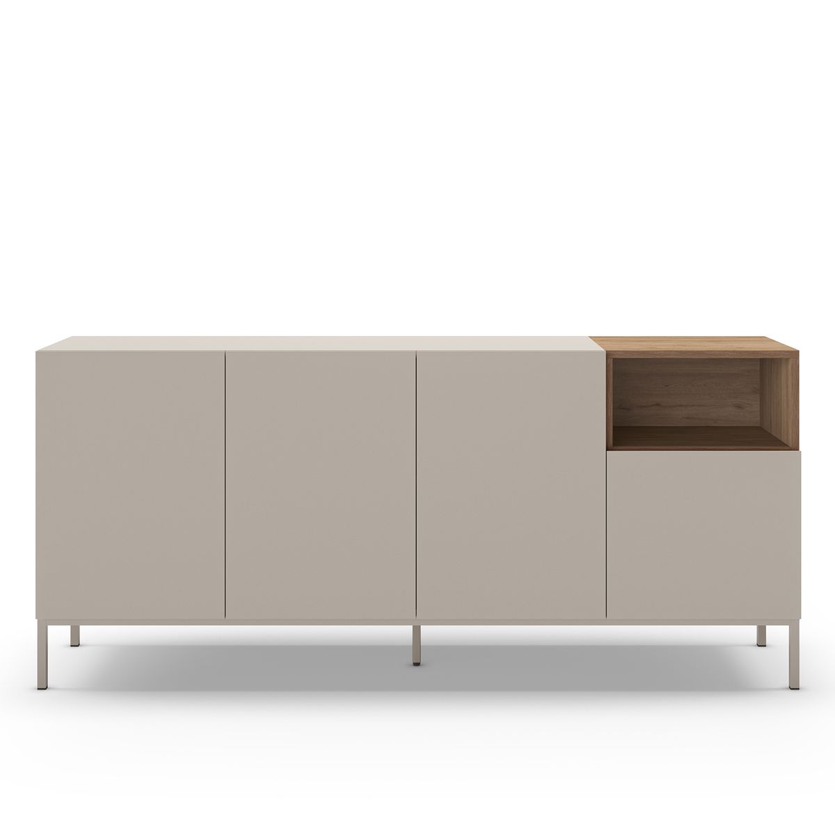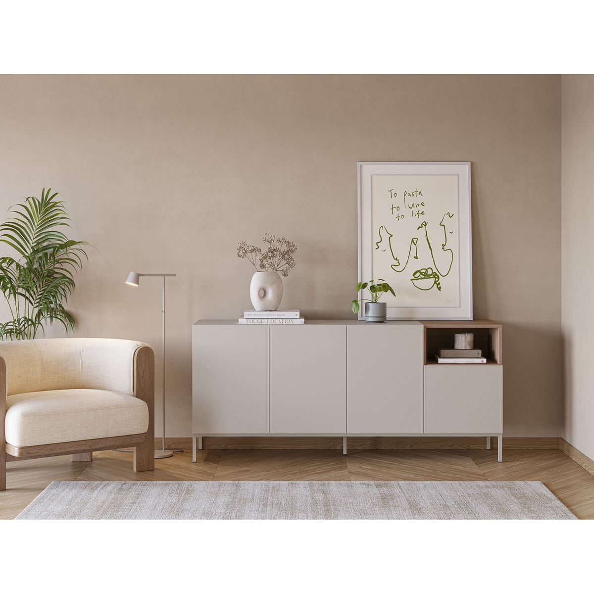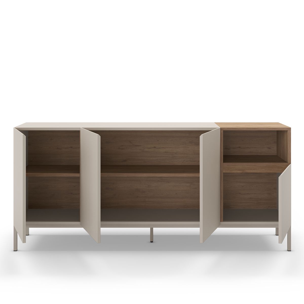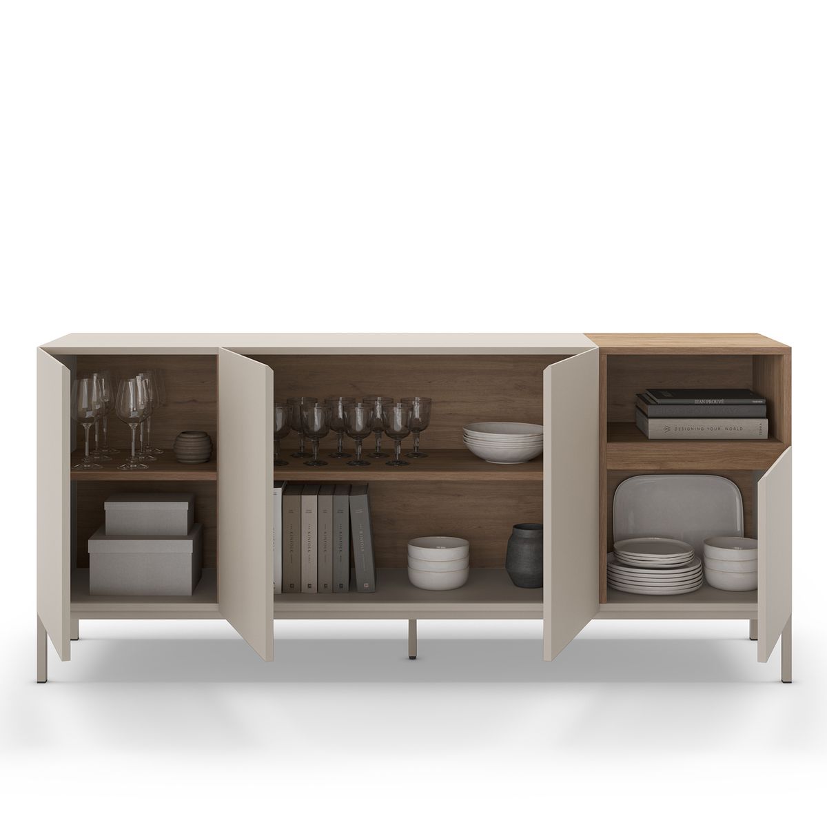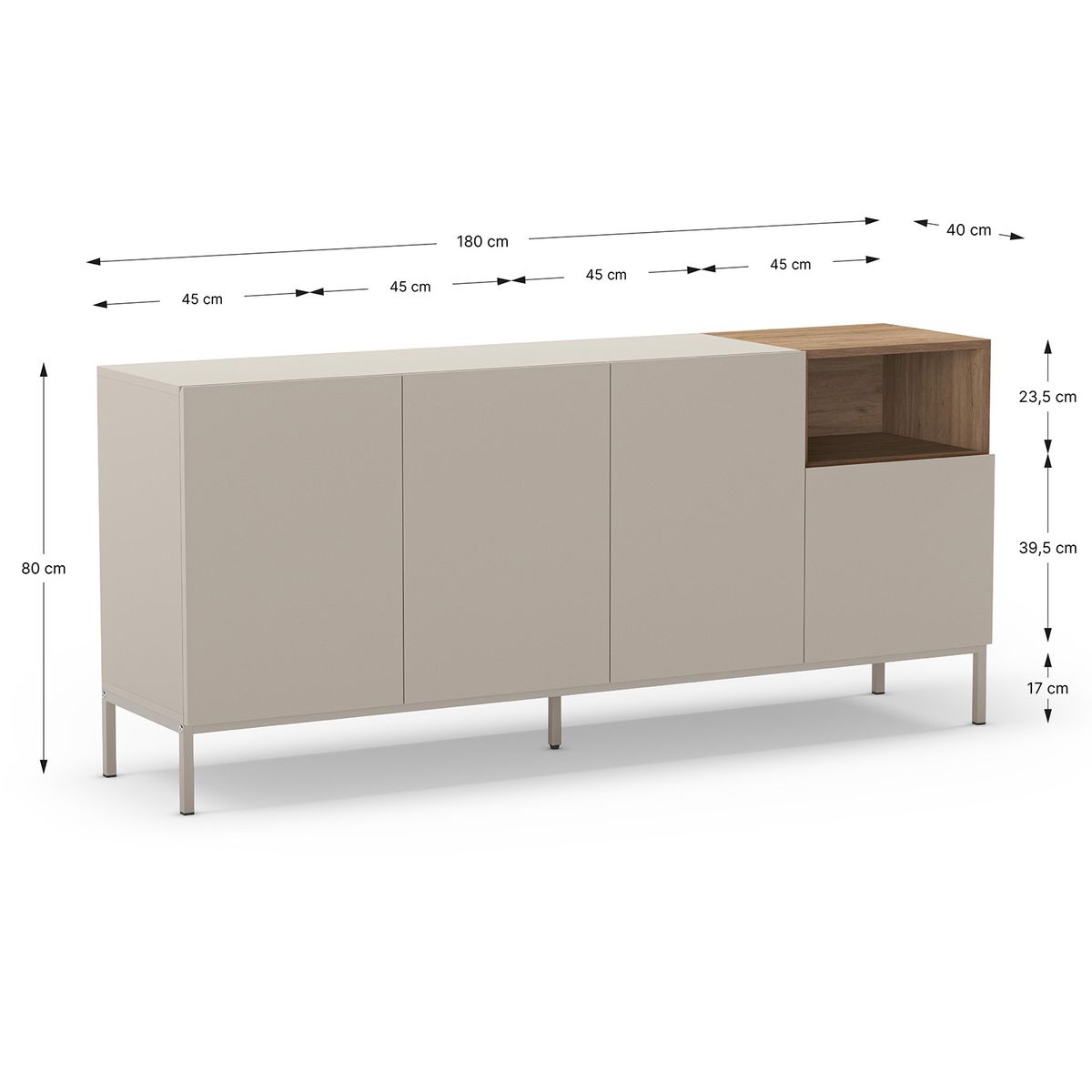 Komoda z drewna i metalu, kolor kremowy i dębowy, 180 x 42 x 80 cm | Cailin