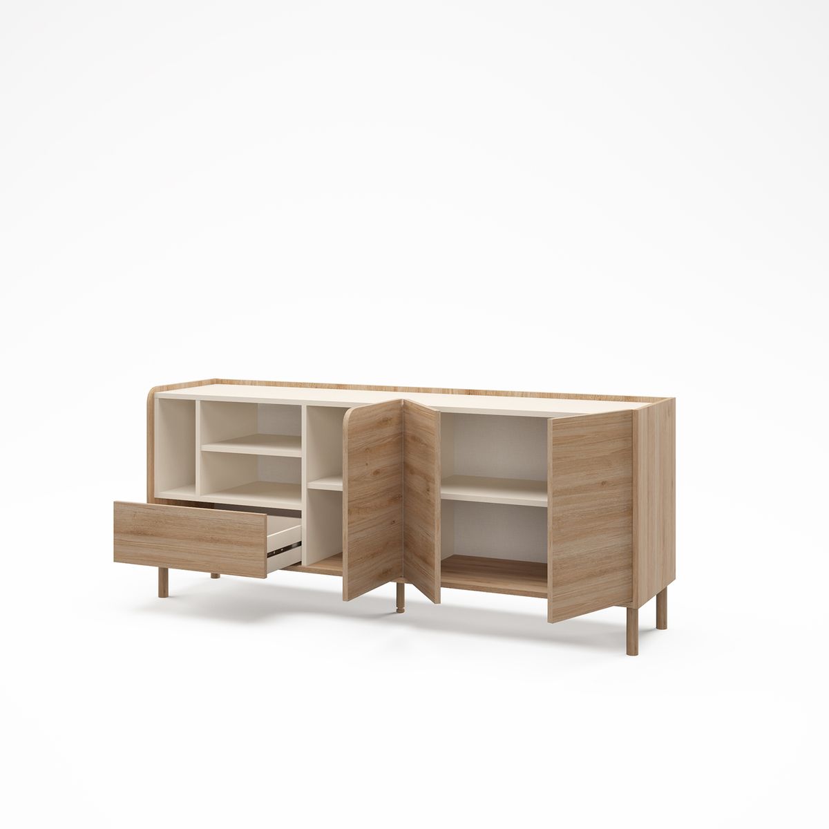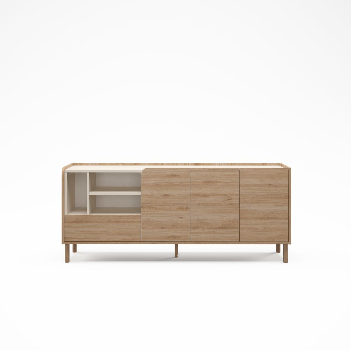 Każdy kąt zasługuje na coś wyjątkowego. Rozświetl swój dzięki kredensowi, który łączy elegancję i praktyczność. Kolor dębu działa kojąco na duszę i umysł, sprzyjając relaksowi i kontemplacji, tworząc oazę spokoju pośród codziennego zgiełku. Połączenie drewna i metalu jest nie tylko estetyczne, ale i funkcjonalne: trwałość i design idą w parze. Odkryj znaczenie doskonałości w połączeniu z jakością. Meble zaprojektowane, aby odmienić i upiększyć Twoje przestrzenie. Dodaj je do koszyka już teraz!