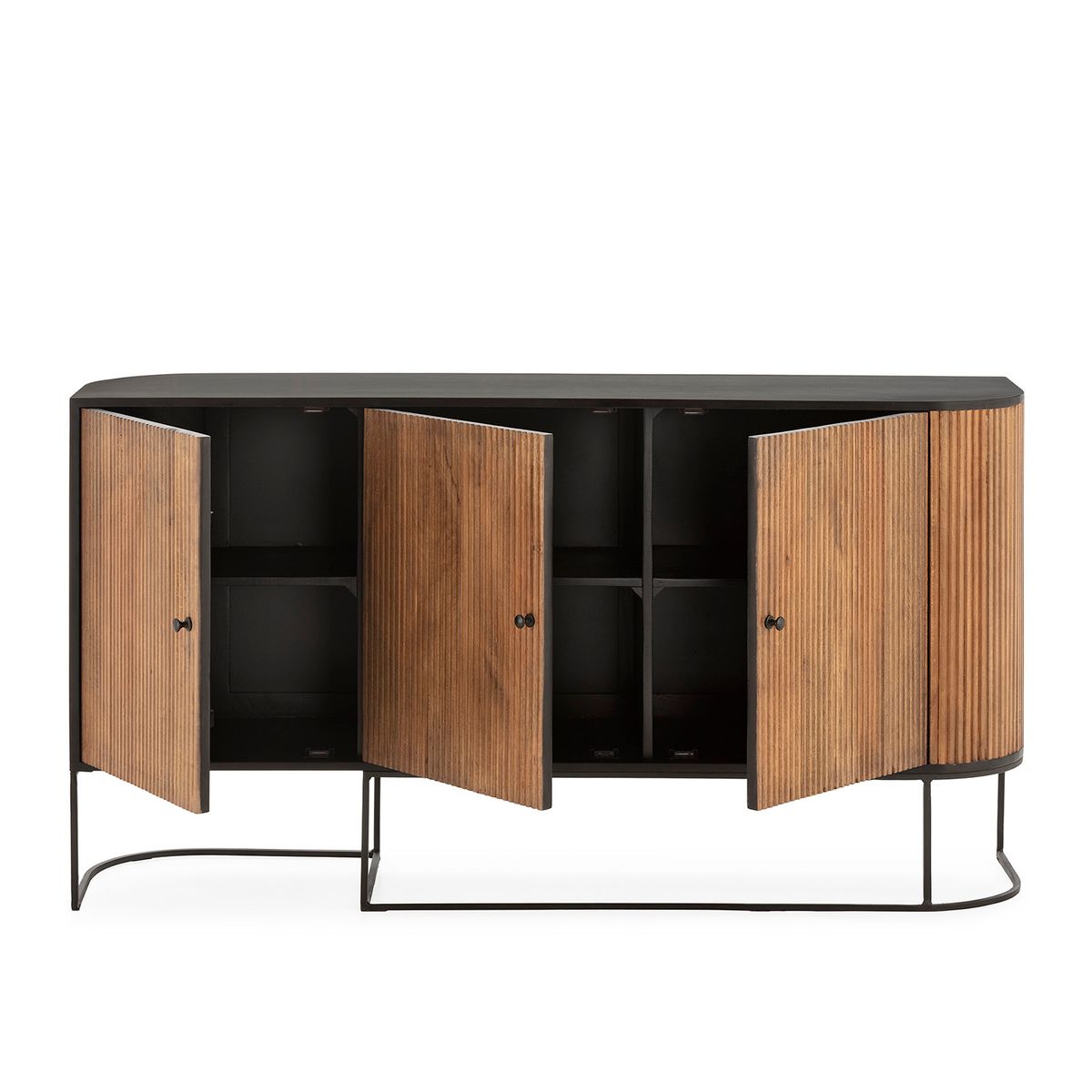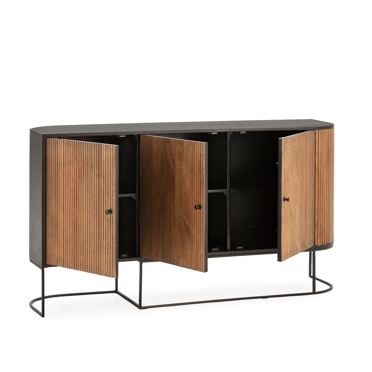 Komoda z drewna mango i metalu w kolorze dębowym i czarnym, 165 x 40 x 90 cm | Curve