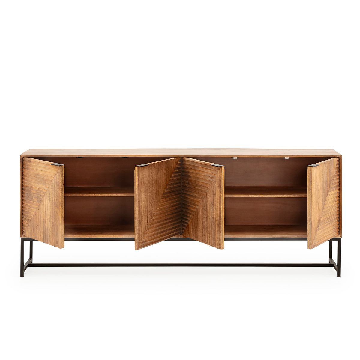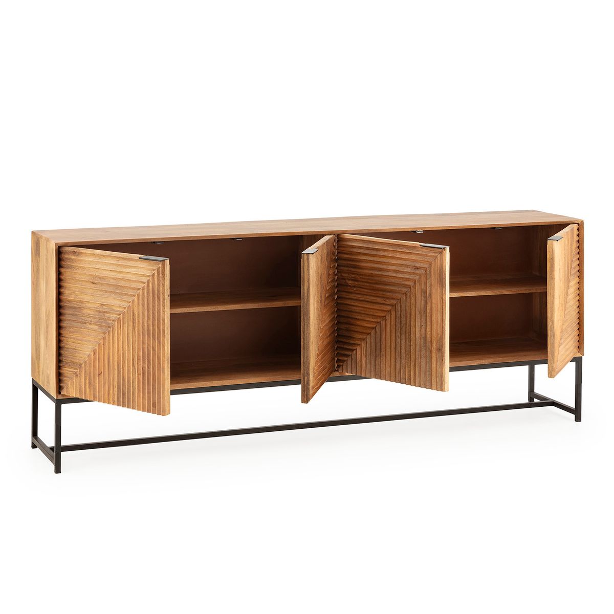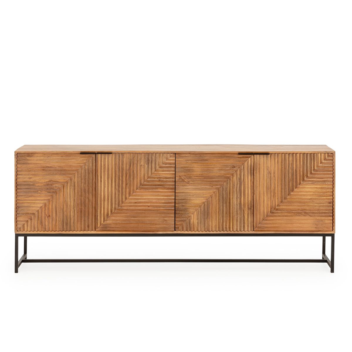 Komoda z drewna mango i metalu w kolorze dębowym i czarnym, 210 x 40 x 80 cm | Nereida