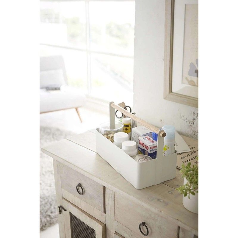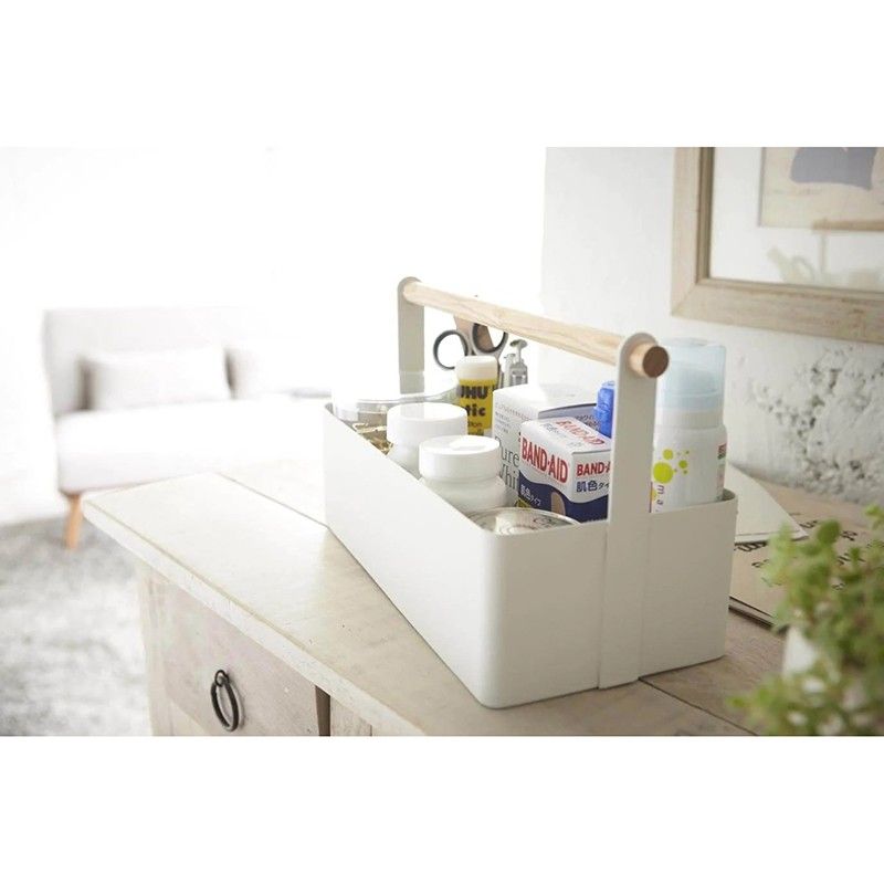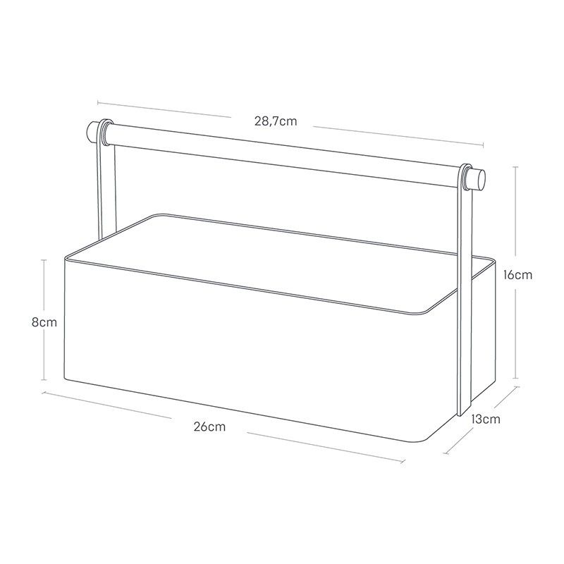 Kosz ze stali i drewna L w kolorze białym i naturalnym, 29 x 13 x 16 cm | Toska