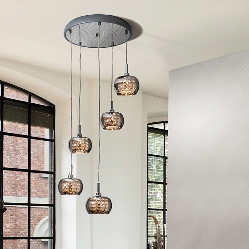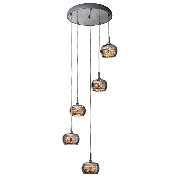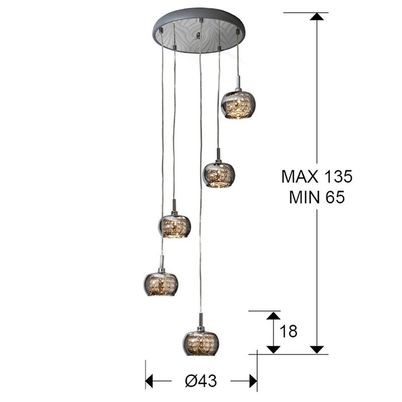 Lampa sufitowa z 5 lampkami ze stali i szkła lustrzanego Arian, Ø43x65cm