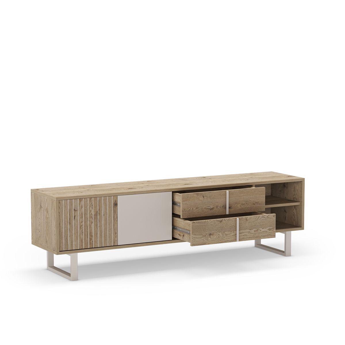 Stojak pod telewizor z drewna i metalu w kolorze dębu i szarości, 180 x 40 x 51,5 cm | Millay