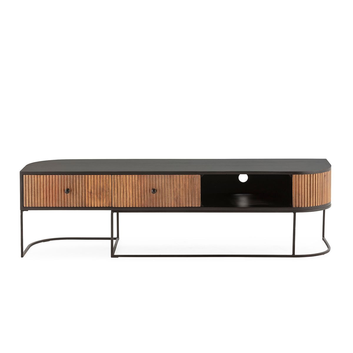 Szafka RTV z drewna mango i metalu w kolorze dębu i czerni, 160 x 40 x 45 cm | Curve