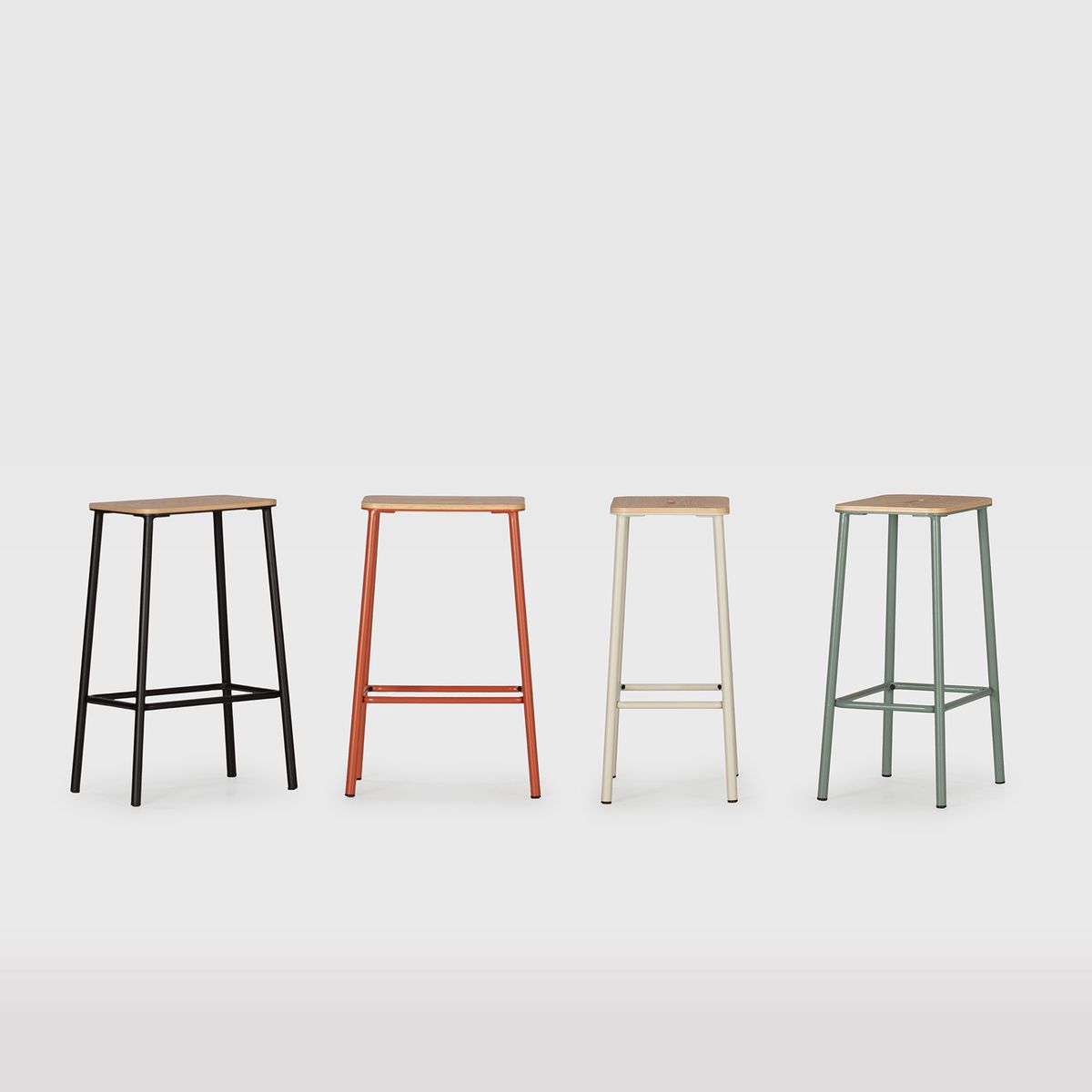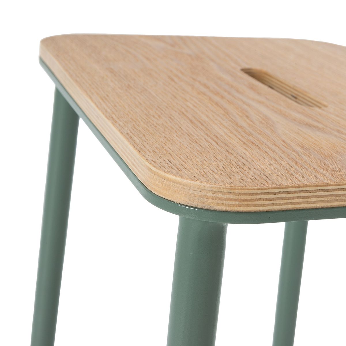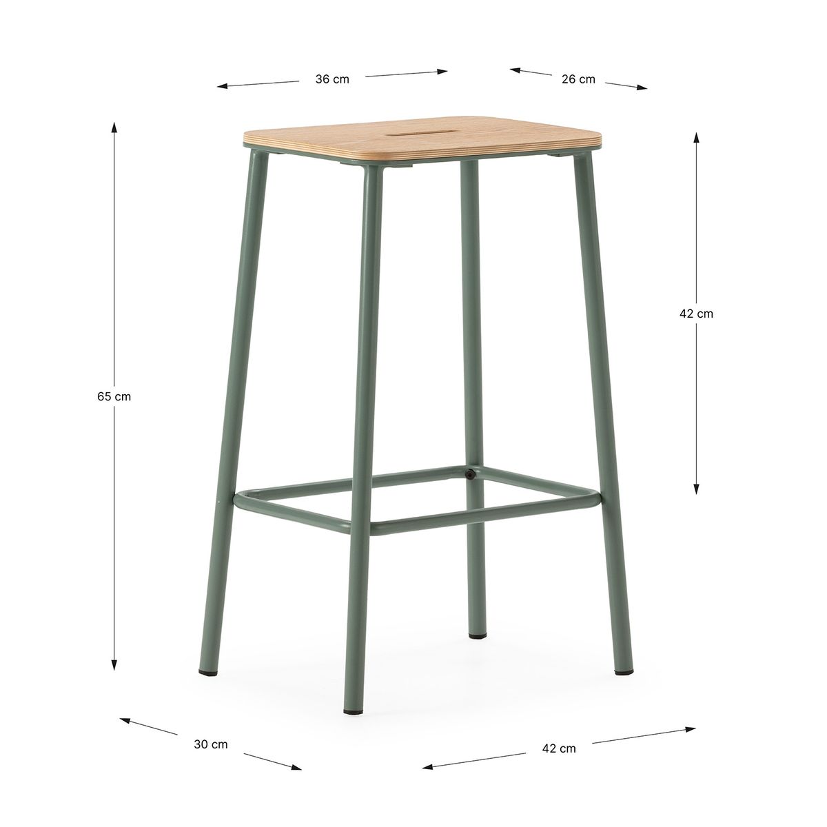 Wysoki stołek z drewna i metalu w kolorze akwamarynowym, 30 x 42 x 65 cm | Abba