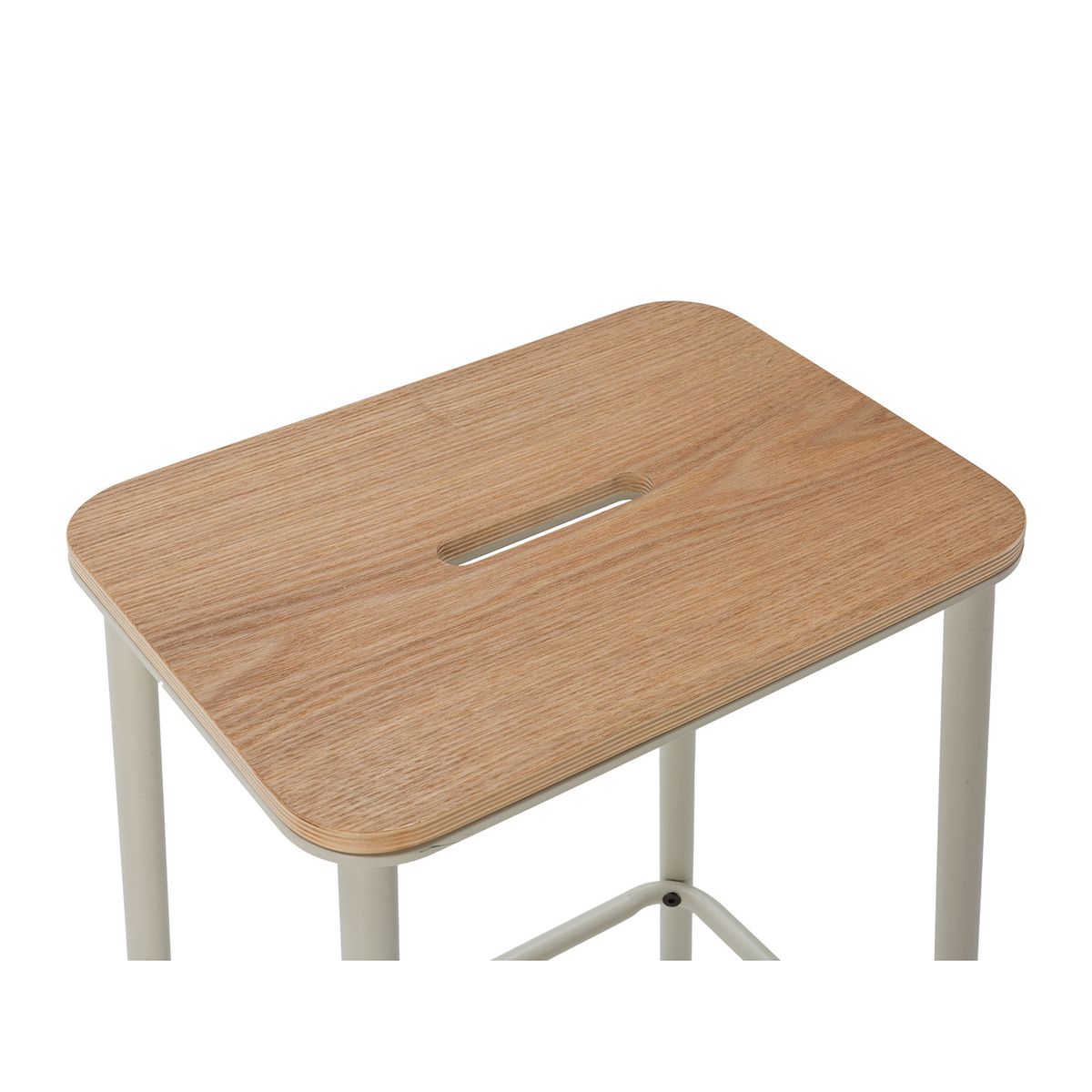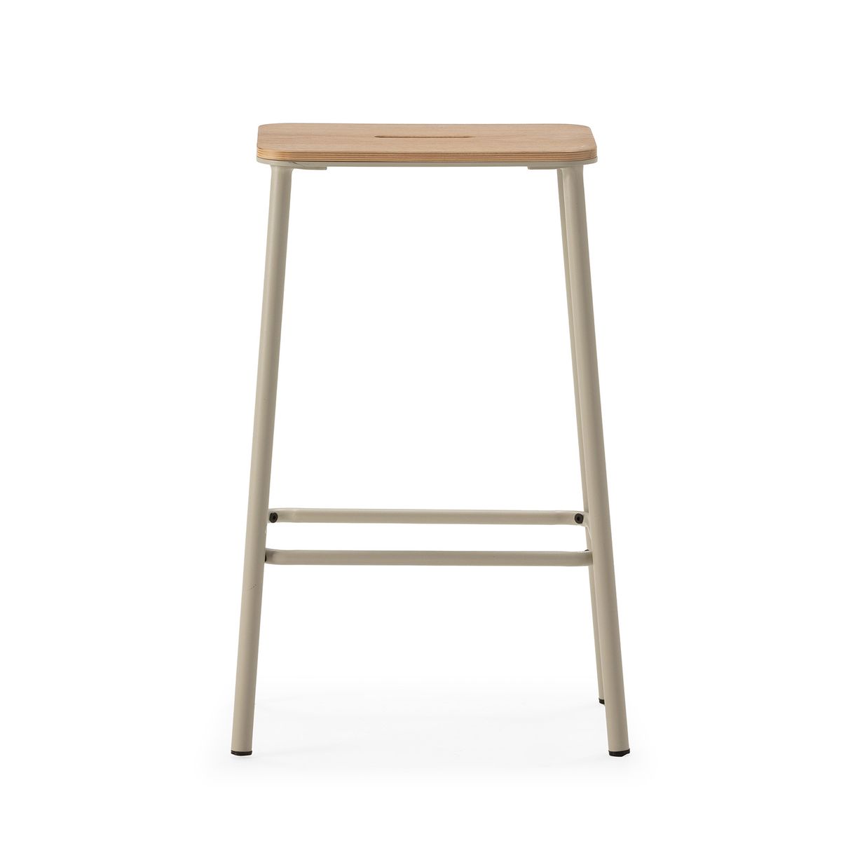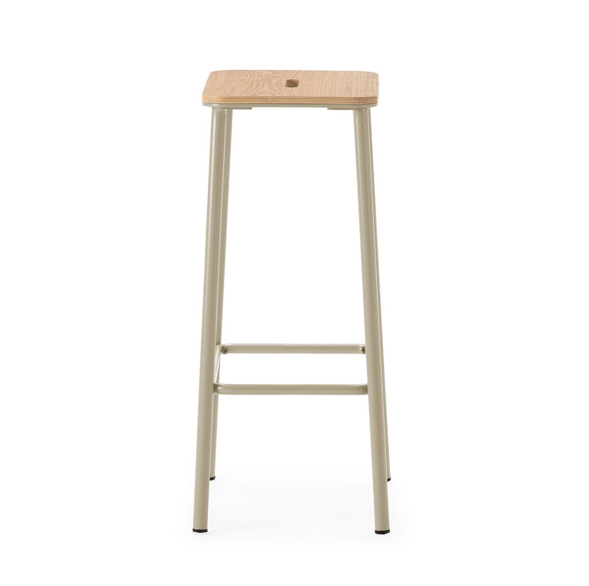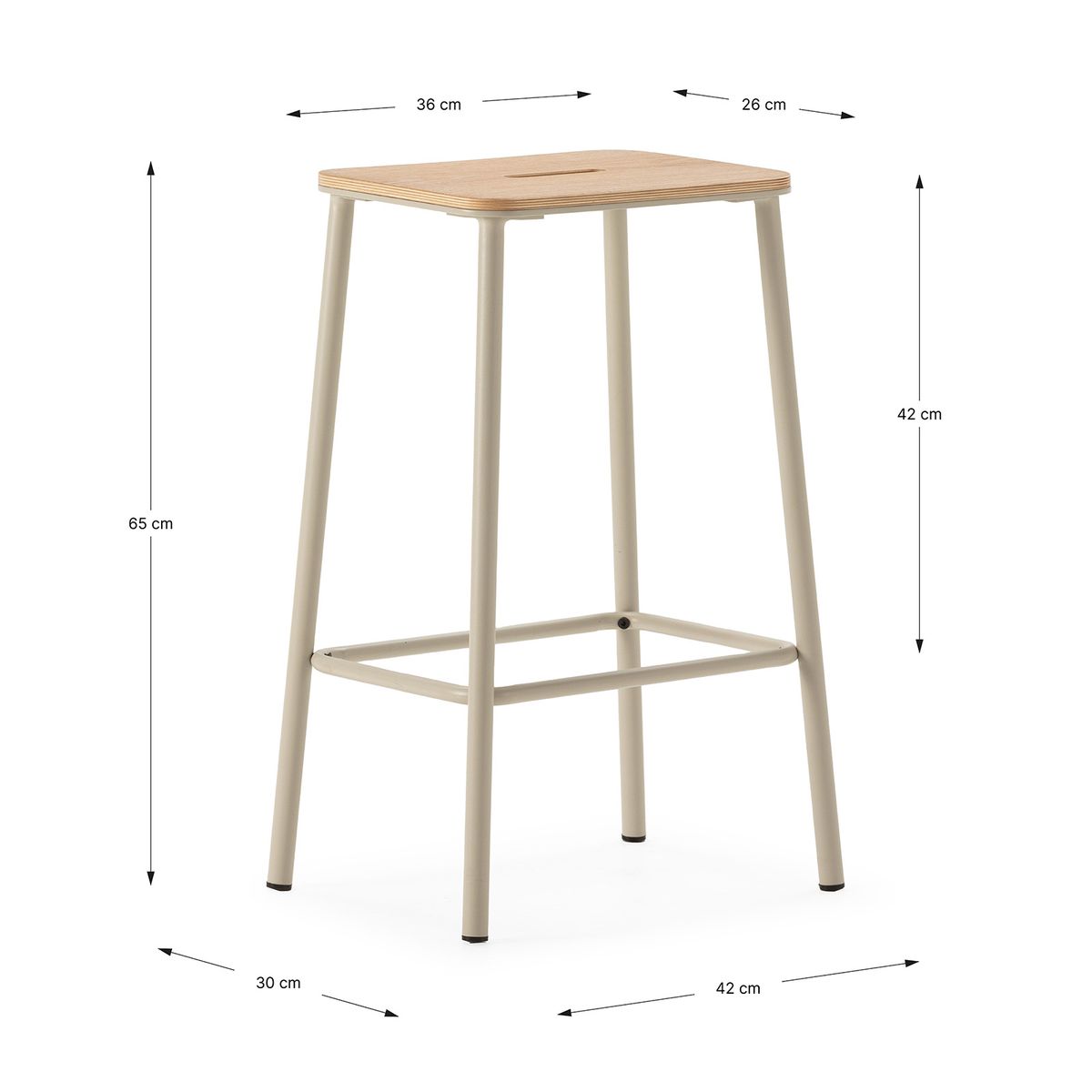 Wysoki stołek z drewna i metalu w kolorze beżowym, 30 x 42 x 65 cm | Abba