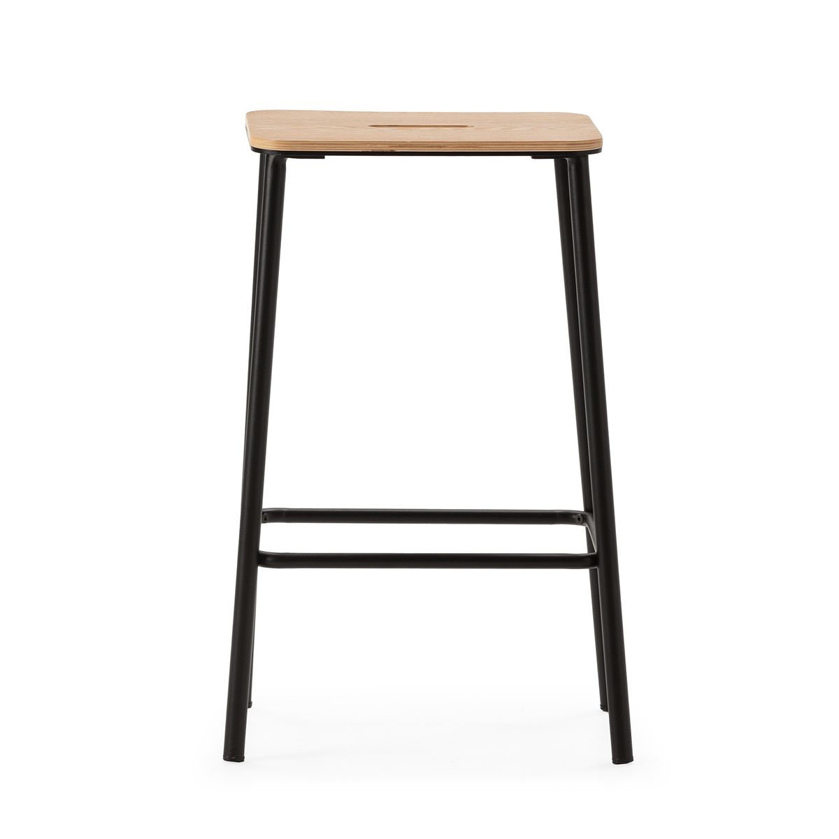 Wysoki stołek z drewna i metalu w kolorze czarnym, 30 x 42 x 65 cm | Abba